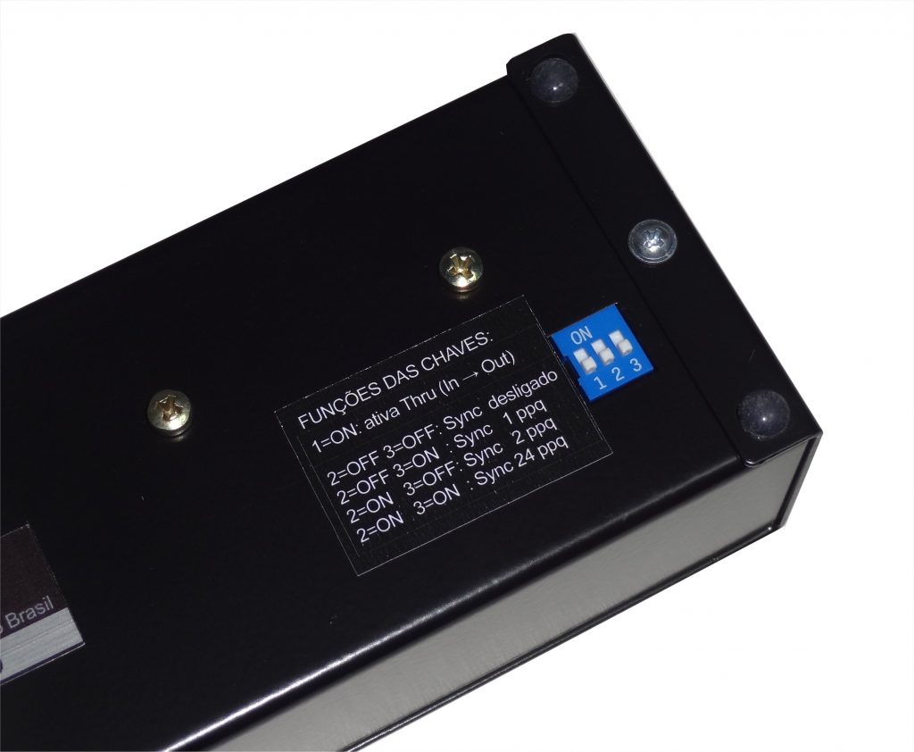 O formato de sincronismo pode ser selecionado pelas microchaves embaixo da MIDI I/F+, conforme a tabela: